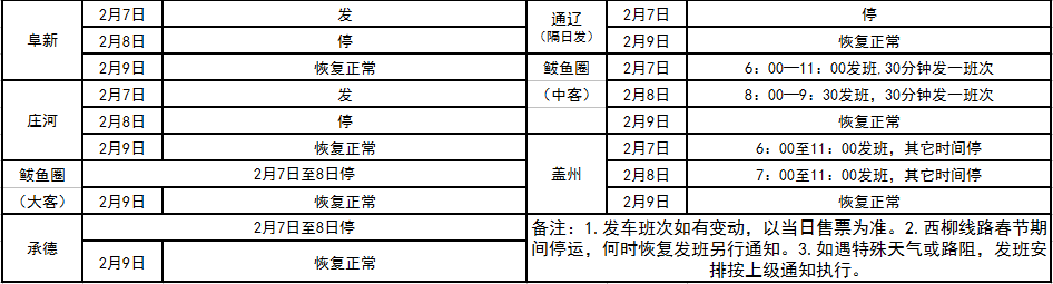 2016年春節(jié)假期班次發(fā)車時(shí)間